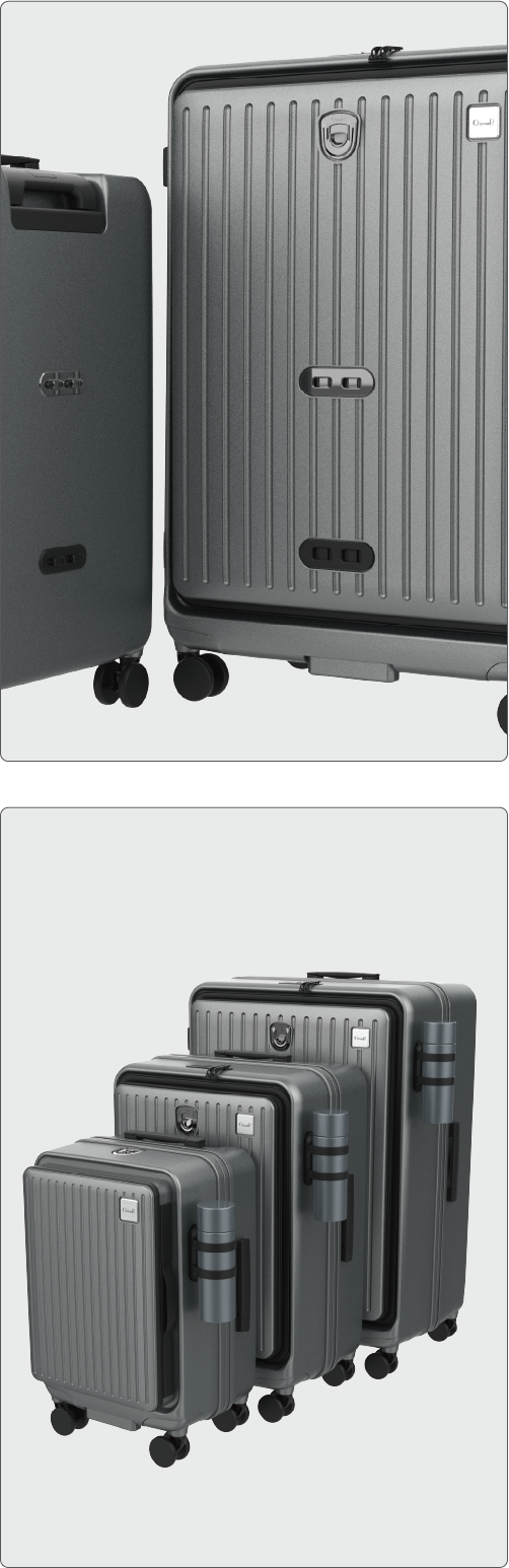 finish with the case surface. The male buckle is secured to the small suitcase with screws.