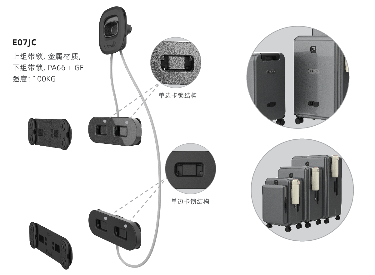 ● 材质:锌合金, 尼龙加纤, 磁铁● 开启机制:按钮开启
